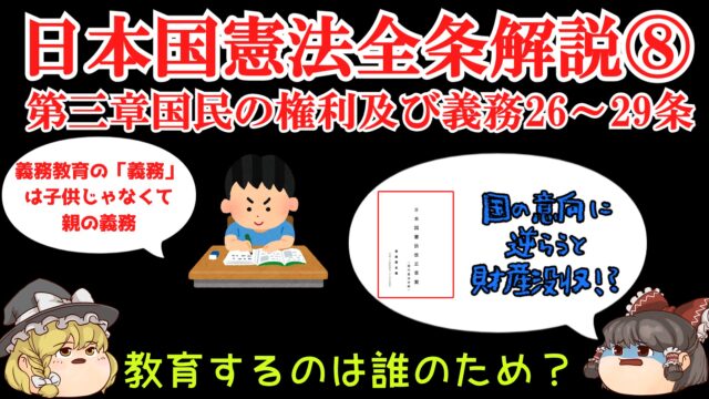 日本国憲法全文解説⑧(第三章国民の権利及び義務26~29条)と自民党憲法改正草案の検討