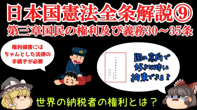 日本国憲法全文解説⑨(第三章国民の権利及び義務30~35条)と自民党憲法改正草案の検討