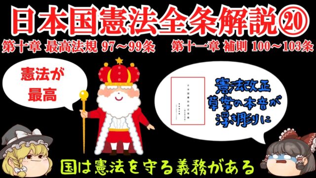 日本国憲法全文解説⑳(第十章最高法規97~99条~第十一章100~103条)と自民党憲法改正草案の検討